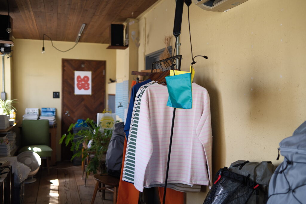 メインは、HouHouオリジナル「ORITARA ONSEN Tシャツ」と「ふくろうちらし てぬぐい」です。なぜなら、これらのオリジナルグッズのイラストを描いてくれたHIGASHI ALPS落合恵さんとは、taramuさんからご縁を繋いでいただいたからです。