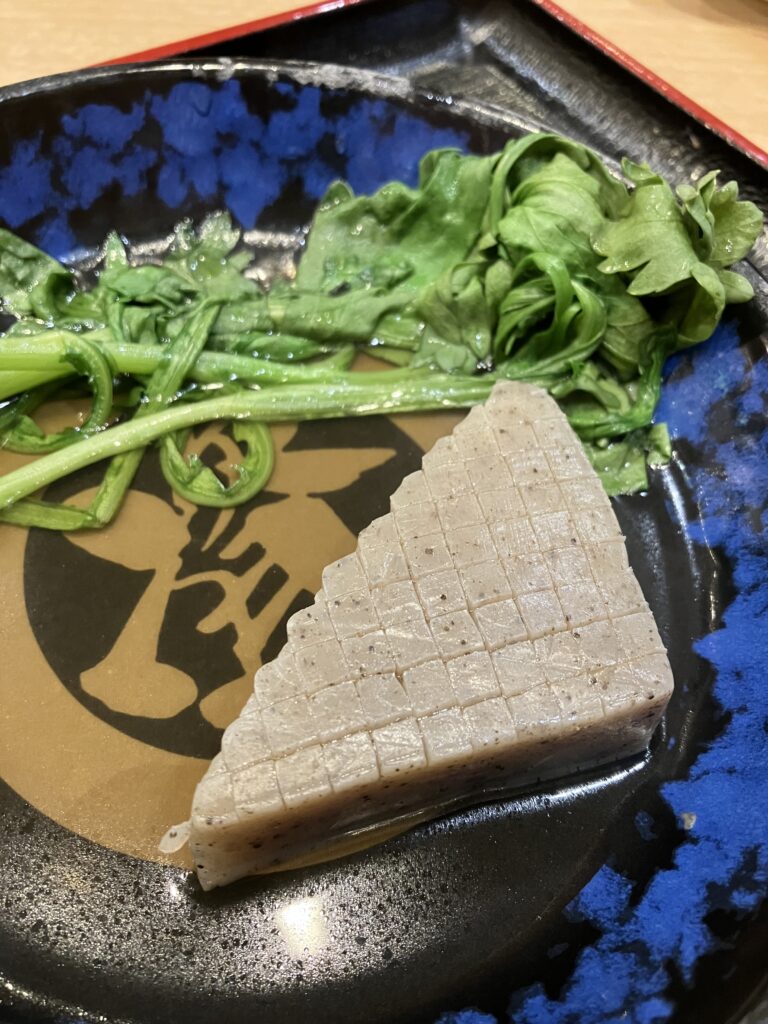 わたくしは生まれてこの方、一切浮気することなくこんにゃく推し。それから、北九州に来て大好きになった具が、春菊です。おでんに春菊を入れる地方って他にあるのかな?それでも不動の一位はやっぱりこんにゃく。それなのに。数年前にメニュー改訂があり、たくさんの具がリストラされたタイミングで、こんにゃくは結び白滝に座席を譲ってしまっていたのです。わたくしの悲しみは、しばらくおでん鍋を見られないほど深いものでした。3年ぶりくらいに会えた、こんにゃくさん。これからも、いつでも会えるように、毎回食べて「こんにゃくは必要なんだ」という意思表示をしようと思います。