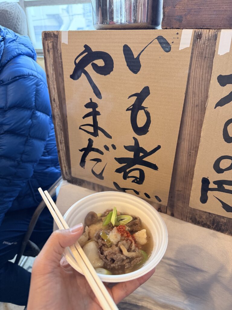 せっせと仕込んだ芋煮も大好評で、あっという間に完売。ゆうすけは開店待ちして食べたそうです。東北愛が染み込んでて、めっちゃ美味しかったです。実は昨年の6月に、一度山田さんの芋煮をいただいているのですが、冬の芋煮はさらに味わい深くて、どんぶりいっぱい食べたかったぁ。