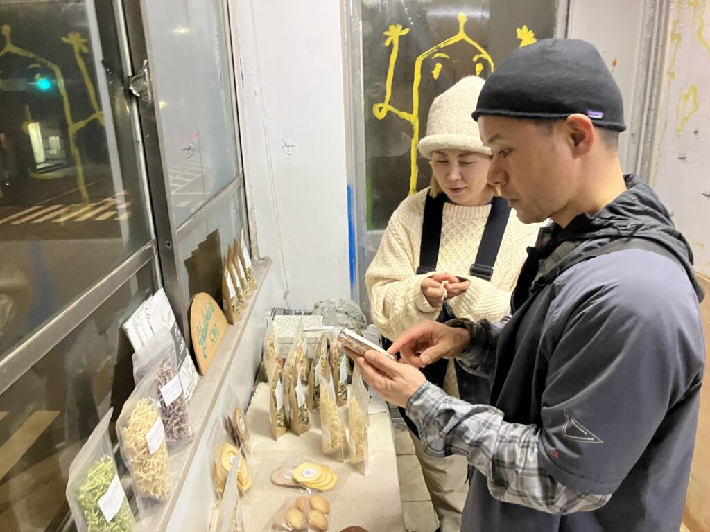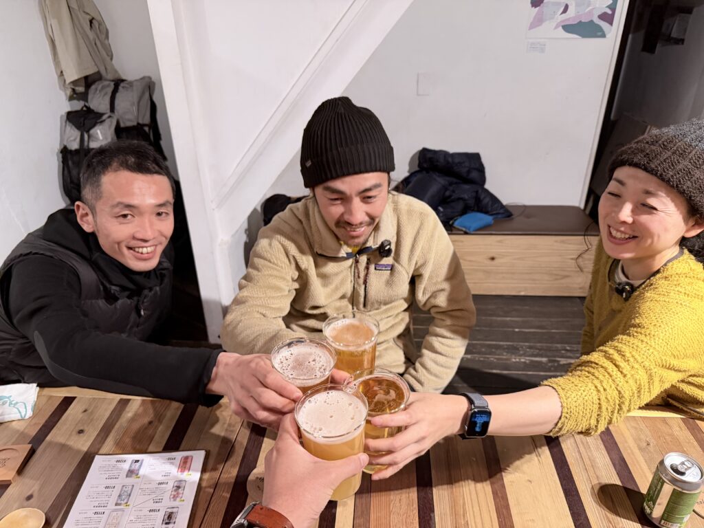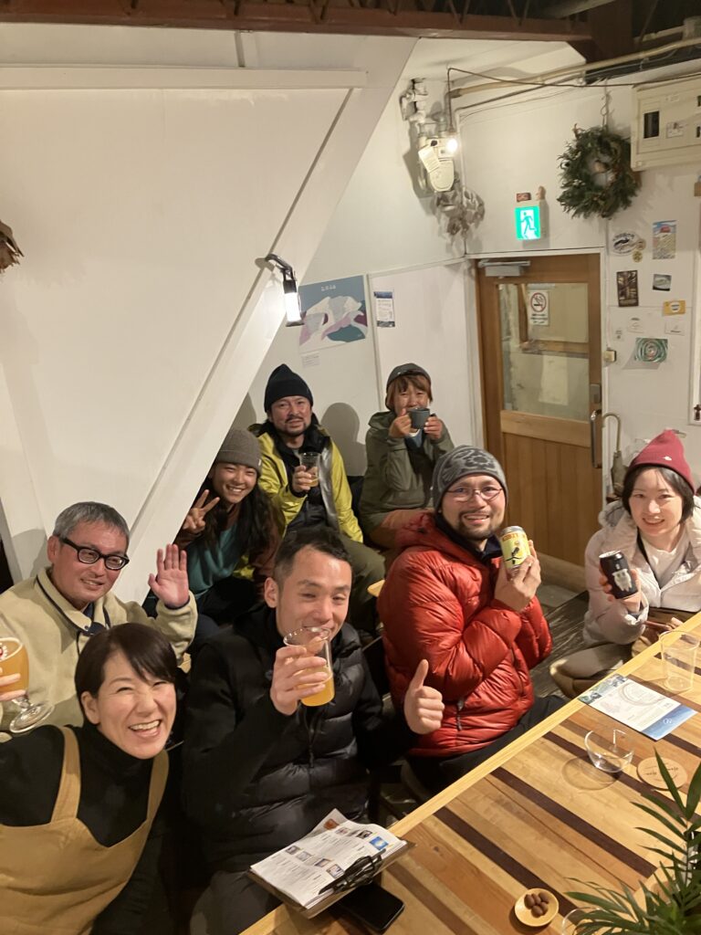 大寒波襲来の予報を受け、波乱の予感はあったものの、出発してすぐに吹雪で目の前が見えなくなった時は「着かないんじゃないか?」と思い怖くなったそうです。北九州に着いたと同時にInto the tent.にてふるまうための大量の芋煮を仕込み、トークの準備をして、ようやく金曜日夕方のHouHouビール営業に遊びに来てくれました。