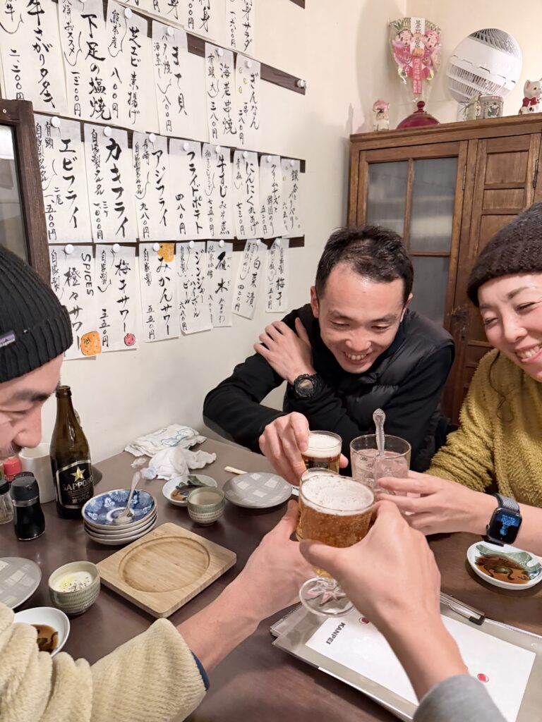 その収録には山田さんにもゲスト参加してもらいました。山田さんとのpodcast収録も、恒例行事ですね。これで4回目の出演。わたしたちも山田さんも、まさるさんとは以前から面識はあったものの、ゆっくり話すのは今回が初めて。聞きたいこと、掘り下げたいことがたくさんあり過ぎて、あっという間に時間が飛び去り、いつも通りの2時間収録。まだまだ続けたい気持ちを断ち切って、急いで予約していた打ち上げ会場へ移動。
