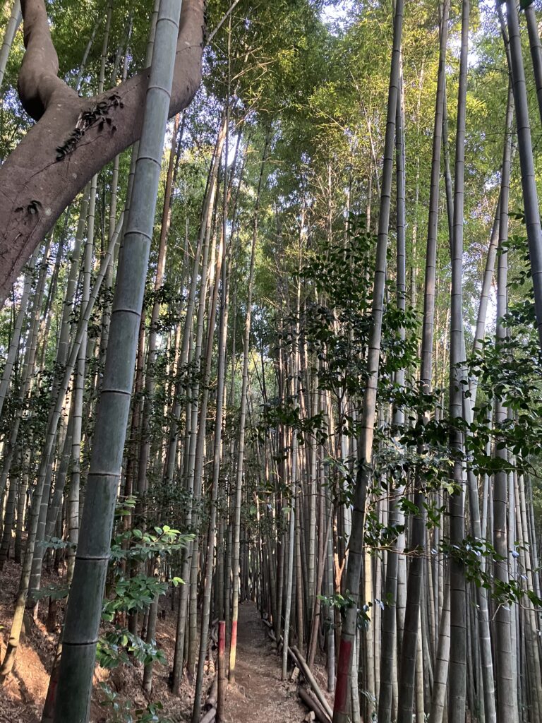 わたくしにとって歩き慣れた道。みなさんの後ろからついていって、楽しむ背中をそっと見守っておきたい気持ちと、いちいち見どころを口に出したい気持ちと。序盤の見どころは、竹林歩き。京都の嵐山へ行く必要がなくなるくらいに素敵でしょ。